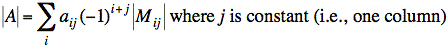 Def: Mij ≡ minor matrixij (of square matrix A) ≡ A with row i and column j deleted.