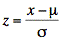 In order to use tables for the value of the cumulative distribution function, F(x), for a gaussian distribution, we convert values into their equivalent value, z, for a standard gaussian distribution, (i.e., one with mean = 0 and variance = 1):