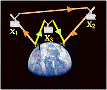 The probability of a packet passing successfully through satellite X1 is denoted as P(X1 = 1) with value P(X1 = 1) = 0.8. The probability of a packet not passing successfully through satellite X1 is denoted as P(X1 = 0) with value P(X1 = 0) = 1 − P(X1 = 1) = 0.2. Using similar notation, P(X2 = 1) = 0.75 and P(X3 = 1) = 0.6. Events X1, X2, and X3 are independent.