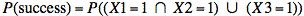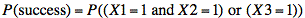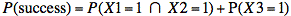 P(success) = P(0 0 1) + P(0 1 1) + P(1 0 1) + P(1 1 0) + P(1 1 1)