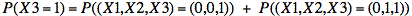 X1 = 1 ≡ {(X1, X2, X3) = (1, 0, 0), (1,0,1), (1, 1, 0), or (1, 1, 1)}.