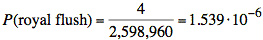 Sol'n: a) A royal flush is ace, king, queen, jack, and ten of the same suit.