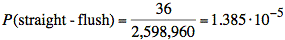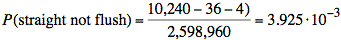 # straight flushes = 9 4C1 = 9⋅4 = 36