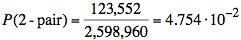 # 2-pair = 13C2⋅4C2⋅4C2⋅11C1⋅4C1 = 78⋅6⋅6⋅11⋅4 = 123,552