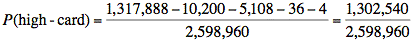 # 1-pair = 13C1⋅4C2⋅12C3⋅4C1⋅4C1⋅4C1 = 13⋅6⋅220⋅4⋅4⋅4 = 1,098,240