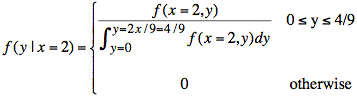 If we take a purely mathematical approach to finding f(y | x = 2), we use the definition of conditional probability: