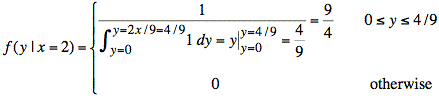 The equation for f(y | x = 2) also captures the information in the above plot: