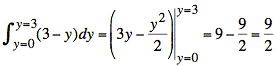 The integral in the denominator is the area of the triangular cross-section at x = 3. We may compute it as one-half base times height or by integrating: