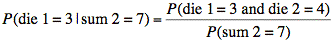 Sol'n: a) We calculate the conditional probabilities from a chart (not shown) of the 36 equally-likely outcomes for the pair of numbers showing on the first two dice: