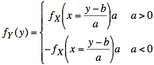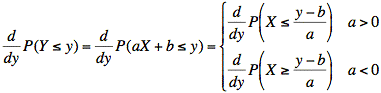 The derivatives in terms of x are probability density functions for X, and the derivatives of y = ax + b are equal to a: