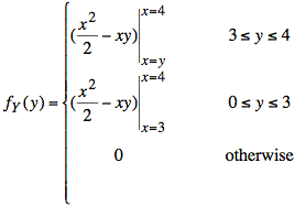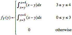 Substituting f(x, y) = x − y into the integral, we evaluate fY(y).