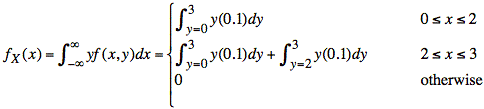 We integrate in the y direction to find the marginal density function, fX(x), that we need in the calculation of μX.