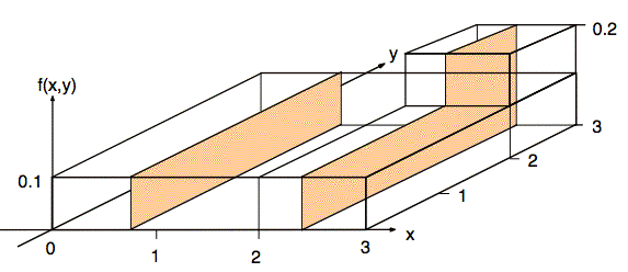 We can calculate the above integrals, or we may observe that the values of the integrals represent the areas of cross sections in the y direction, as indicated in the following figure.
