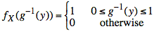 Note: If fX(x) is more complicated than the simple uniform density function considered here and has values that are functions of x, then we would also replace those values of x with g−1(y), too.