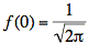 The value of f(x) at x = 0 is the constant term since e0 = 1: