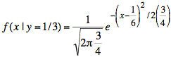 Now we find P(X > 1). This is equal to 1 − F(x = 1) where F(x) is the cumulative distribution for f(x | y = 1/3). We use the formula that converts the value of x to the value of z for a standard gaussian random variable: