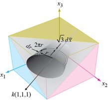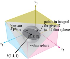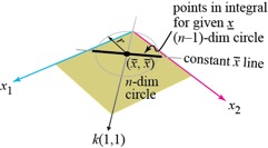gives an extruded (n–1)-dimensional sphere as the region of integration. As shown in Fig. 2(a) for the case of n = 2, the region of integration is an