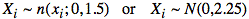 samples, Xi,