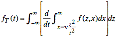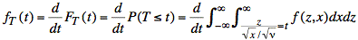 To find the probability density for T, we consider the cumulative distribution for T and take its derivative: