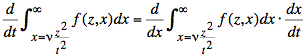 Note: We treat the case of t > 0. We have t in the lower limit in this case because larger values of x give smaller values of t. For the case of t < 0, we would integrate from −∞ to t.