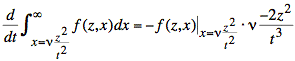 We move the derivative inside the outer integral and write the lower limit in terms of the x more clearly: