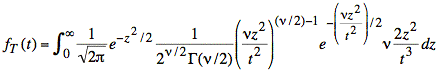 The probability density function of T is a t-distribution with ν = n − 1 degrees of freedom: